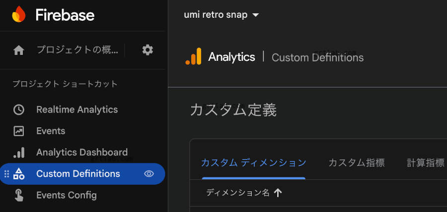 - 左下の歯車アイコン(プロジェクトの設定)の横にある [Analytics] > [ダッシュボード] を開きます。