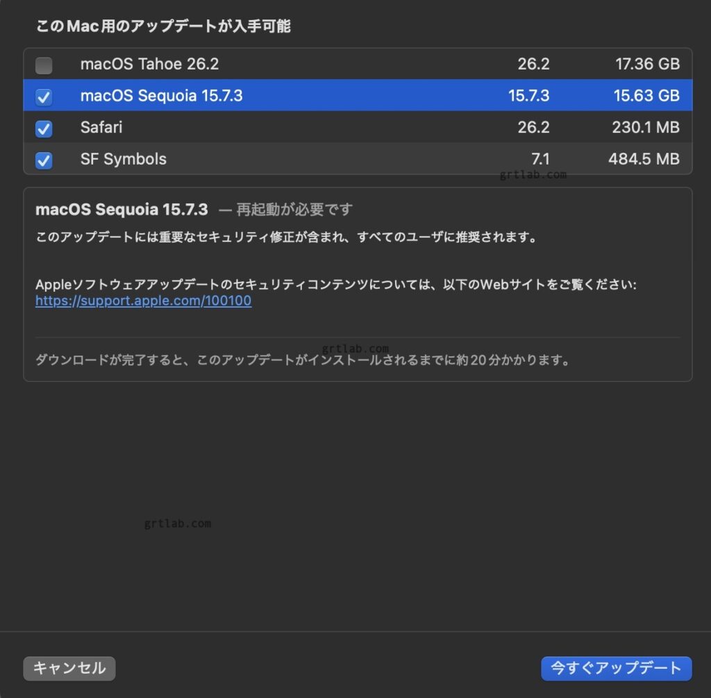 この流れさえ守れば、macOS 15.7.3 への更新はスムーズに進みます。